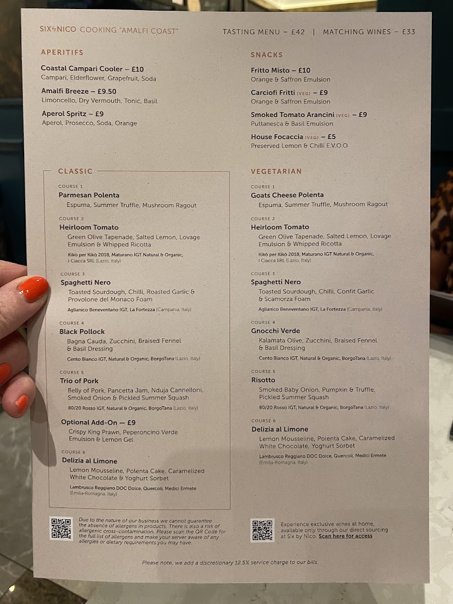 One of the standout features of Six By Nico is the ability to cater to a variety of dietary preferences, ensuring everyone can enjoy the experience. The service is attentive, and the intimate atmosphere of the restaurant adds a personal touch to the dining experience. The staff are knowledgeable, providing helpful recommendations and explaining the inspiration behind each dish, enhancing the overall culinary journey.